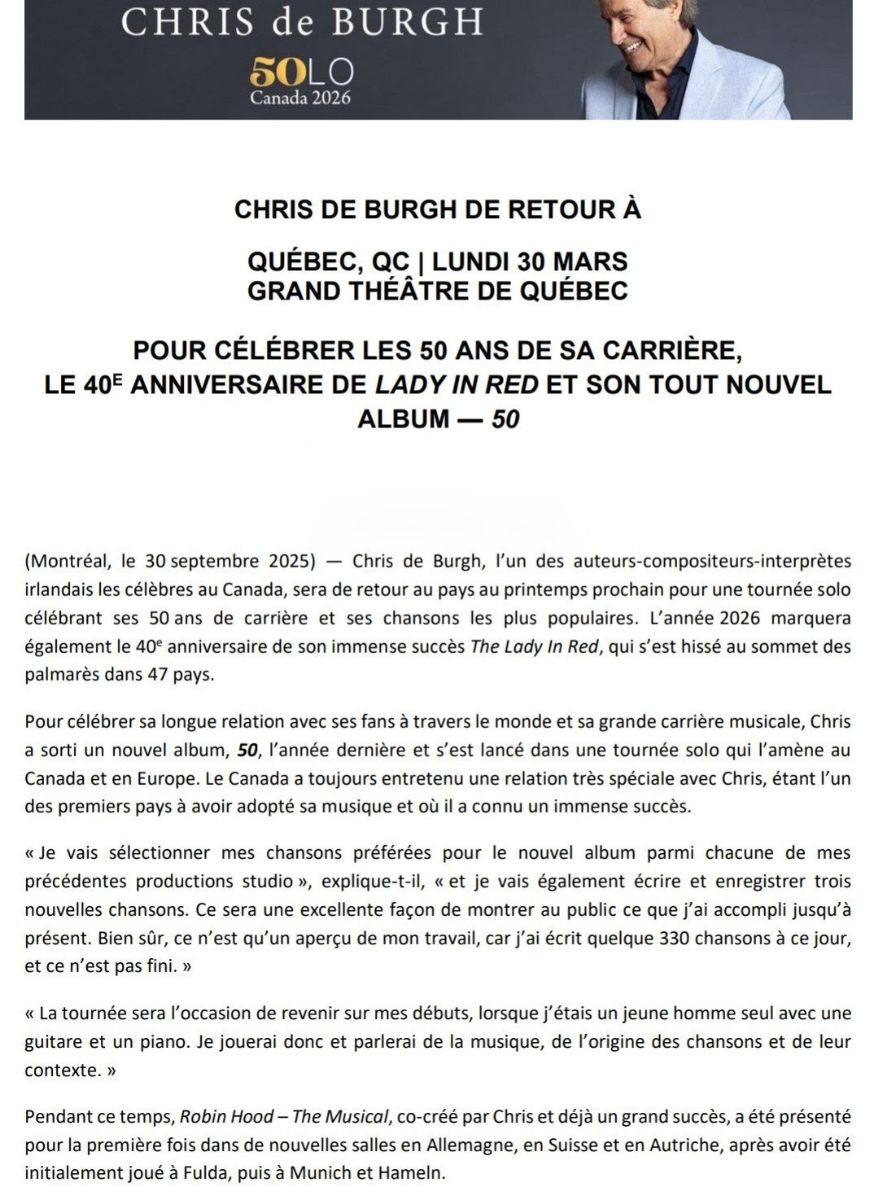 Chris DeBurgh - 12 mars 2026