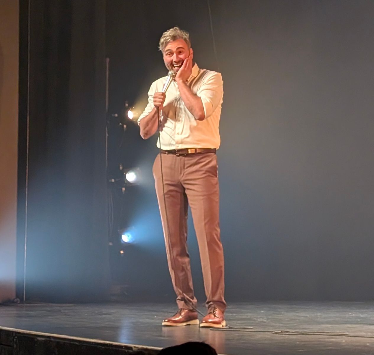 Ses numéros sont hilarants, particulièrement lorsqu’il aborde sa montre qui compte les pas, les réseaux sociaux, les fruits séchés et toutes ces petites absurdités du quotidien qui nous ressemblent. Ce sont des observations simples, mais livrées avec une précision et un timing qui font mouche. On rit souvent, parfois très fort, parfois avec ce sourire complice qui dit : je me reconnais là-dedans.