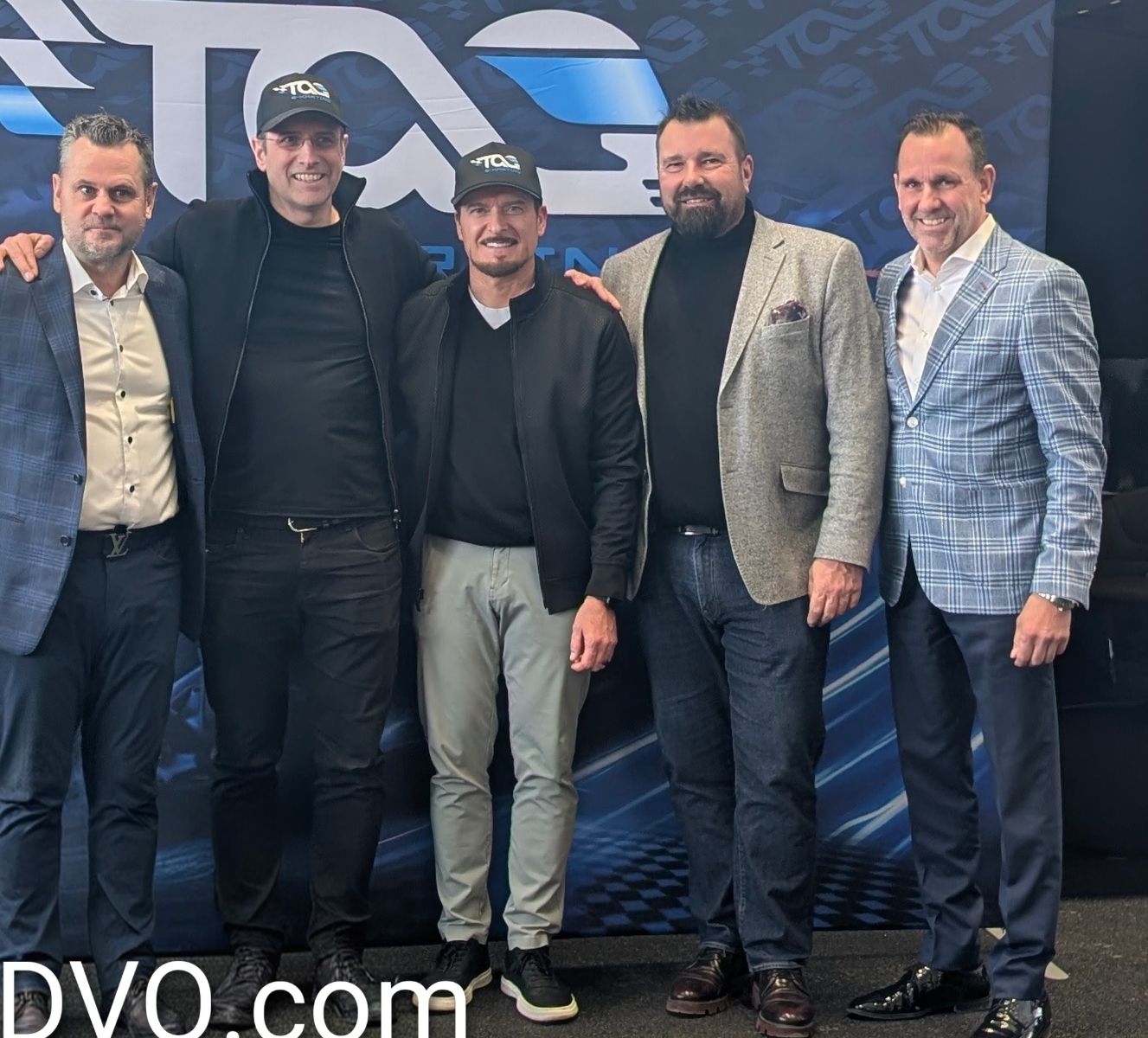 Sur la photo:Richard Scofield, président du groupe St-Hubert, Benoit Theetge, co-propriétaire du Groupe Theetge Alexandre Tagliani, Michel Ayotte, vice-président du Groupe MACH, Adrian Popovici, PDG de TAG E-Karting