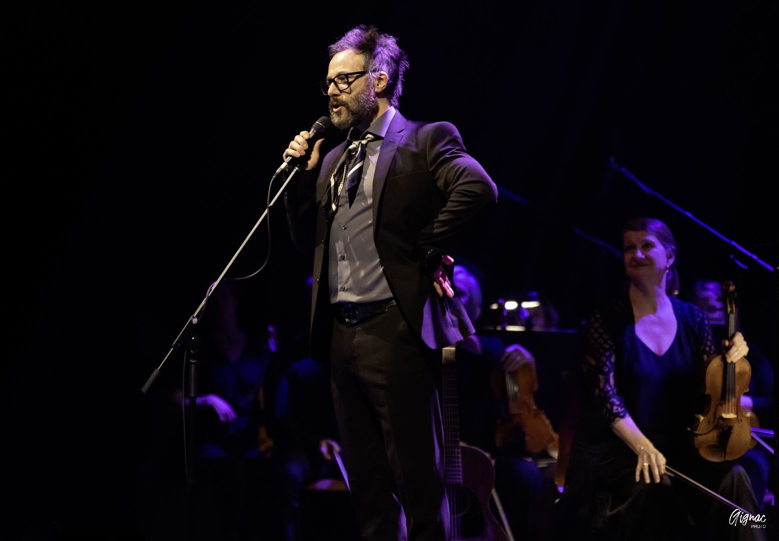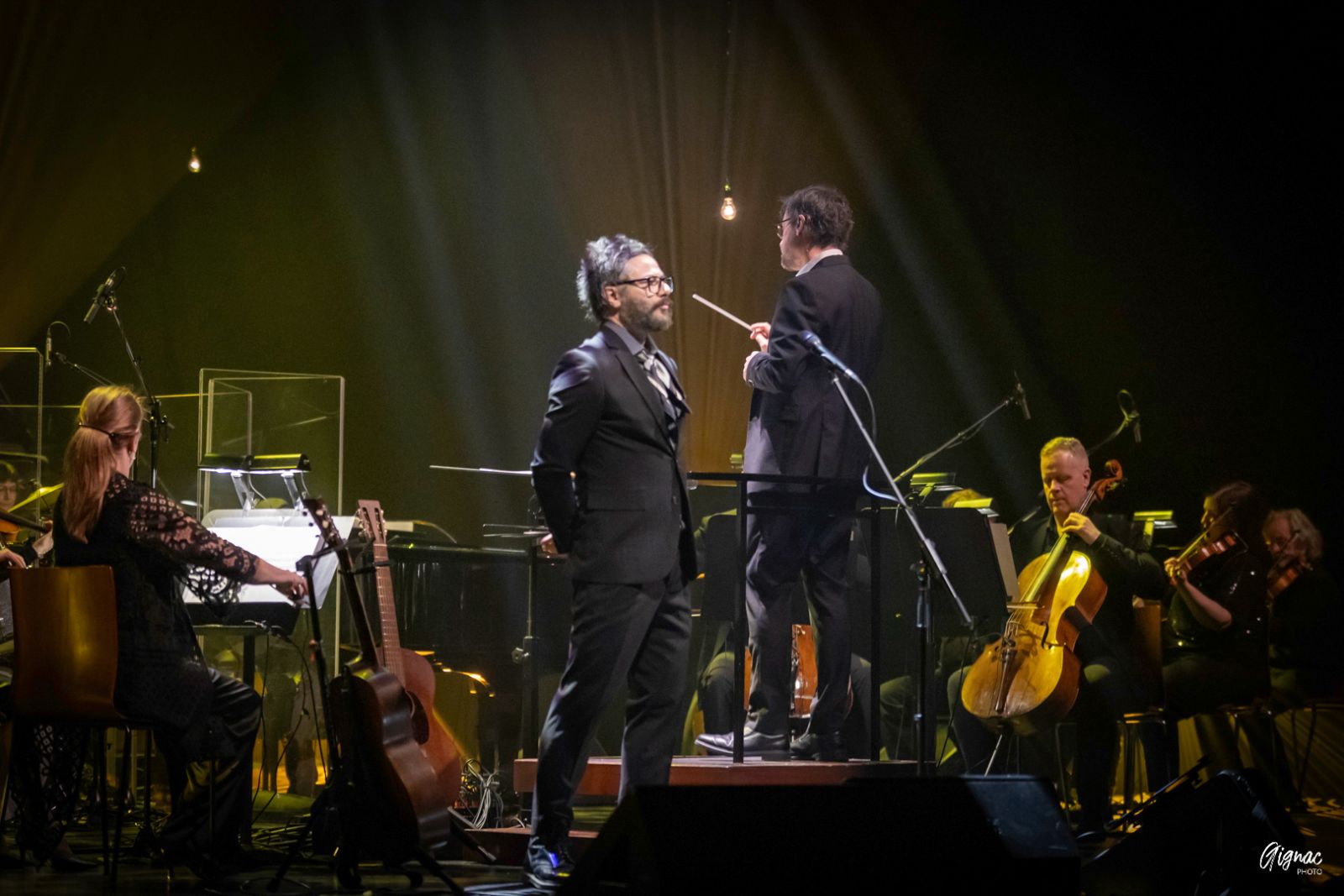 Benoit Pinette, élégamment vêtu d’un costard noir, nous proposera pour clore le spectacle, la déjà magnifique Le ciel est back order. Dans ces arrangements symphoniques, cette chanson s’élève au rang de chef-d’œuvre bouleversant. Heureusement, il ne nous a pas laissé là-dessus. Il nous offrira, au rappel, Calfeutrer les failles. Galvanisé par de chauds applaudissements, il est revenu nous interpréter Jésus en version « unplugged » seul à la guitare et à l’harmonica, laissant ses complices de la soirée spectateurs de premières loges.