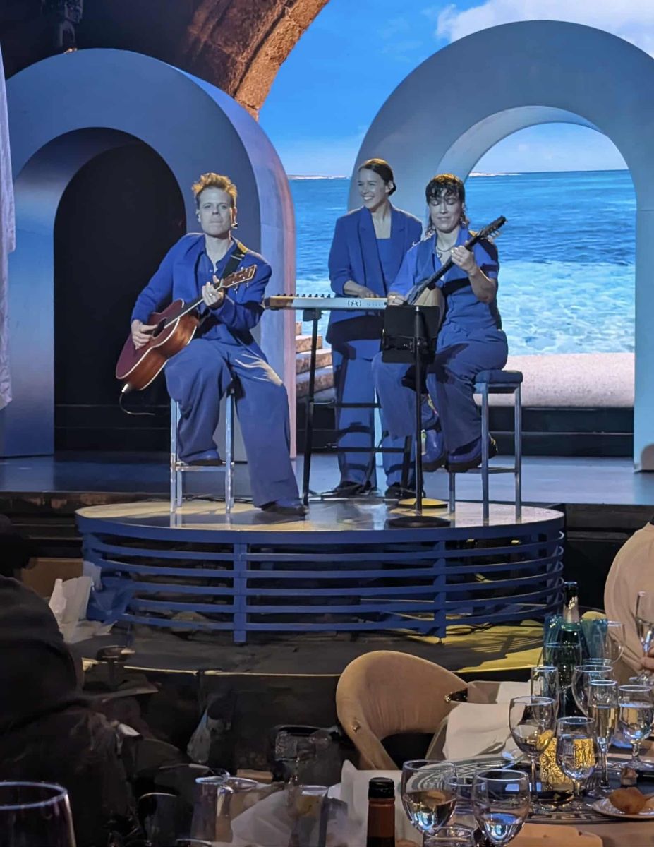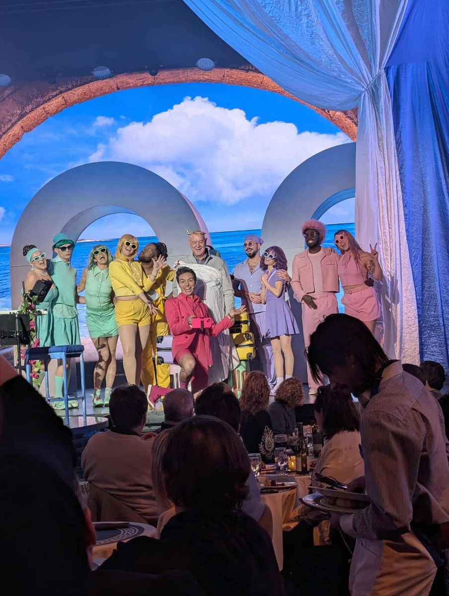 La mise en scène de Geneviève Dorion-Coupal est un véritable bijou : décor immersif, statues grecques animées, néons éclatants, costumes scintillants… On se croirait dans une immense boule disco posée sur une île magique! Les treize artistes sur scène débordent de talent et de passion.
