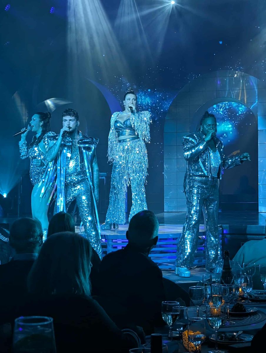 Le repas-spectacle complète l’expérience à merveille : un délicieux souper dès 17h30, et avant même que le show commence, les musiciens nous offrent déjà un avant-goût du spectacle! Ils jouent quelques pièces, mettent l’ambiance et donnent tout de suite le ton à la soirée. Il y avait même de l’animation pendant le souper, ce qui rend l’attente encore plus festive et immersive. Ensuite, on plonge directement dans cette ambiance où le vintage, la modernité et les paillettes se marient parfaitement.