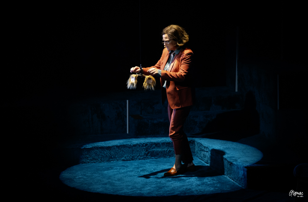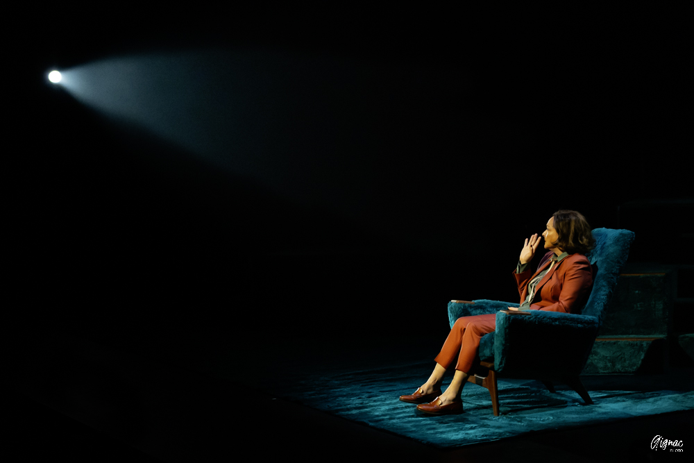 Joe Bocan signe sa superbe mise en scène. Entre ses costumes et les éclairages soignés, son décor fait de voilages et de meubles suspendues, elle arpente la scène, interagissant avec ses talentueux musiciens Éliot Légaré à la direction musicale, Thomas Saulnier et Louis-Julien Dursot à qui elle laissera la scène, le temps d’une chanson